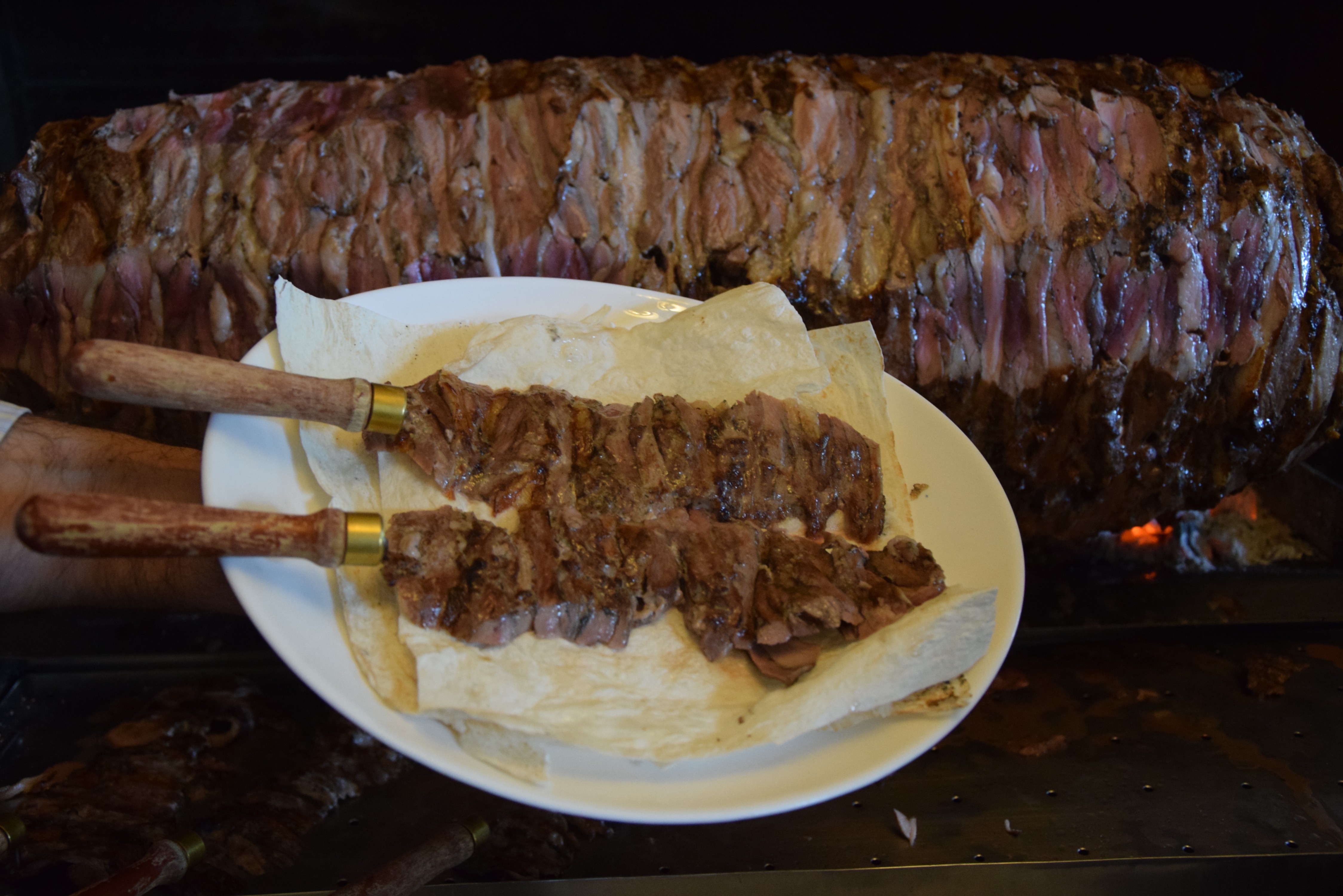 Cağ kebabının ocakta cağa takılarak ve kesilerek sıcak servis edildiğini ifade eden Murat Dağaşan, “Ocakta kesilen etler, müşterinin isteğine göre pişirilir. Az ya da çok pişmiş olarak. Cağ kebabının en önemli özelliği porsiyon olayı yoktur. Bir taneyle başlarsınız, misafirlerimiz ‘tamam’ diyene kadar sürekli gider. 20- 25 tane talep eden müşterilerimiz de var” dedi.