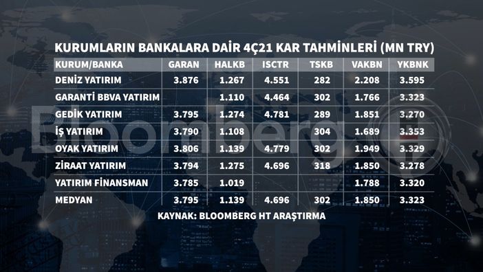 “Önceki çeyrekte net kârı 100 milyon TL’de kalan Halkbank’ın 4Ç21 net kârının 1 milyar TL’nin üzerinde gelmesini bekliyoruz. Beklentimiz büyük ölçüde bankanın TÜFE tahvillerini yüzde 36’lık Aralık enflasyonu ile değerlemesinin etkisini yansıtıyor. Buna ek olarak kredi portföyünün tedricen yenilenmesi de marj tarafında rahatlama sağlayacak. Diğer taraftan bankanın önceki çeyreklerde düşük seyreden provizyon / kredi oranının bu çeyrekte daha yüksek karşılık ayrılarak bir miktar güçlendirecek.’’