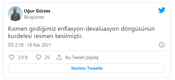 Uğur Gürses ise karar için, “Kısmen girdiğimiz enflasyon-devalüasyon döngüsünün kurdelesi resmen kesilmiştir” ifadelerini kullandı.