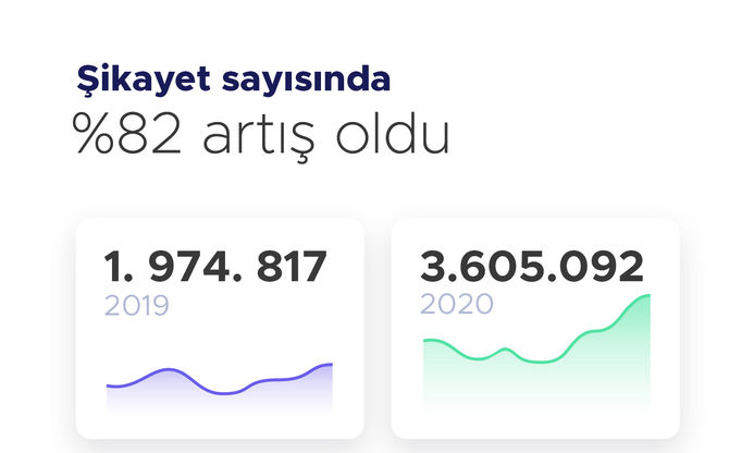 2019’da 1 milyon 974 bin 817 olan şikayet sayısı 2020’de yüzde 82 artarak 3 milyon 605 bin 92 oldu. 2019’da 951 bin 630 olan üye sayısıysa yüzde 80 artarak 1 milyon 713 bin 340’a yükseldi.